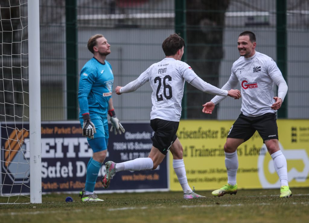 Dieser Platzverweis veränderte die Statik des Spiels. Erstaunlicherweise in eine andere Richtung als erwartet. Denn die Villinger agierten zu zehnt fast griffiger als zuvor und kämpften nun verbissen um jeden Ball. In der 70. Minute schlug der eingewechselte und agile Nico Hug den Ball weit vors Pforzheimer Tor. Gästekeeper Ferdek wähnte den Ball offenbar im Aus, machte aber die Rechnung ohne Fabio Pfeifhofer. Der erwischte den Ball perfekt, leitete ihn direkt zu Gian Luca Feißt weiter, der ihn zum umjubelten 2:2 in die Maschen drosch. In der Schlussphase ging es hin und her. Ein Sieg wäre für beide Teams noch möglich gewesen. Am Ende blieb es beim leistungsgerechten 2:2. FC 08-Cheftrainer Matthias Uhing zeigte sich anschließend vor allem stolz über die Mentalität seiner Mannschaft, die sich in Unterzahl gegen die Niederlage stemmte.