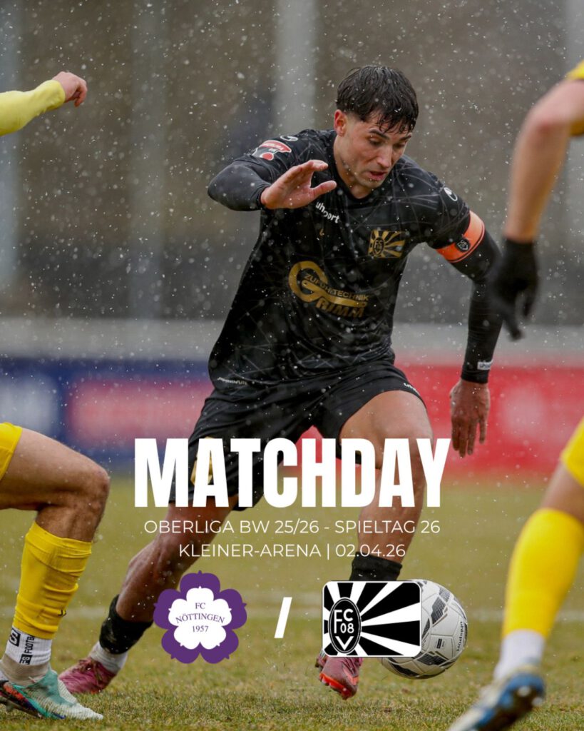 Kein leichtes Unterfangen, denn der FC Nöttingen ist mit seiner spiel- und offensivstarken Mannschaft im Jahr 2026 noch ungeschlagen. Auch wenn der FC 08 ja nun seit vier Partien in Folge ebenfalls ungeschlagen ist – vielmehr diese sogar durchweg gewonnen hat.