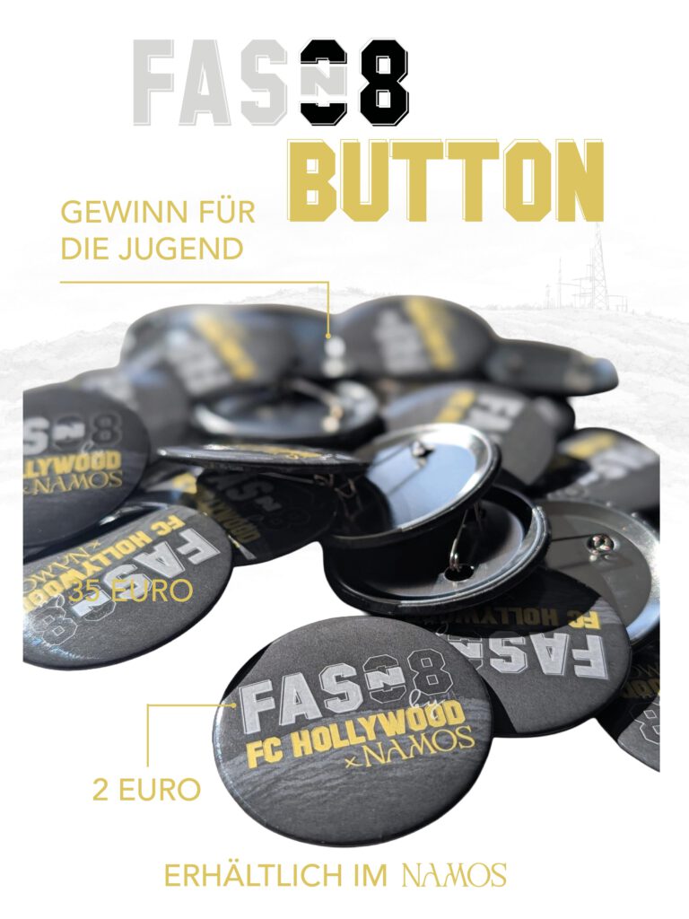 Der Verkauf startet ab sofort in der Bar Namos (Niedere Straße 88, jeden Tag von 11 Uhr bis 0 Uhr, Sonntag 11 bis 17 Uhr, Dienstag Ruhetag). Zusätzlich werden im Rahmen der Fasnet FC-Hollywood-Buttons angeboten. Auch hier gilt: Der Erlös fließt vollständig in die Jugendarbeit des Vereins. Erhältlich ebenfalls im Namos.